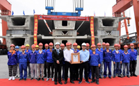 今天,在浙江舟山,中鐵大橋局舟山港主通道項目部收到了上海大世界基尼斯總部頒發的證書,由天業通聯為大橋局提供的TLMEL1200t輪胎式搬運機成功入選了大世界基尼斯之最。TLMEL1200t型輪胎式搬運機由天業通聯為中鐵大橋局寧波舟山港跨海大橋項目量身打造。能實...