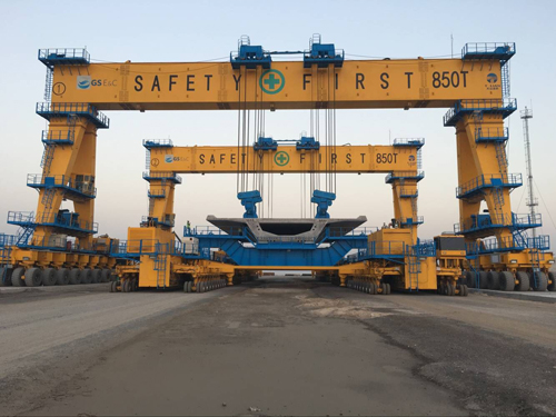 The 1700t L/G, 2*850t Straddle Carrier, 4*425t Transporter and gantry cranes supplied by Tolian palyed a significant role in the bridge construction and are highly praised by the onwer(KPW), constractor(GS) and supervision company.